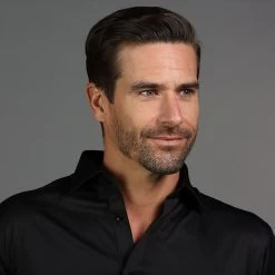 Quattro Flex Dress Shirt With Semi-Spread Collar Black Gingham