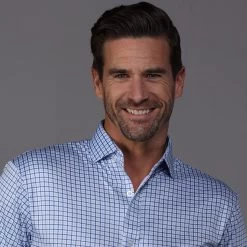 Quattro Flex Dress Shirt With Semi-Spread Collar Blue Tattersall