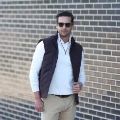 The Brown Tech Suede Cambridge Quilted Vest is the perfect cold-weather transition piece before it’s time to pull out the winter coat. Constructed from quilted polyester fabric that’s windproof while providing an extra layer of warmth. With the quilted detailing, brown suede style trim around the pockets and back collar provides a handsome texture to any outfit. Put it over any of our sweaters (with a Dress Collar Polo underneath, of course) for an extra layer of comfort without losing the classic, refined look.