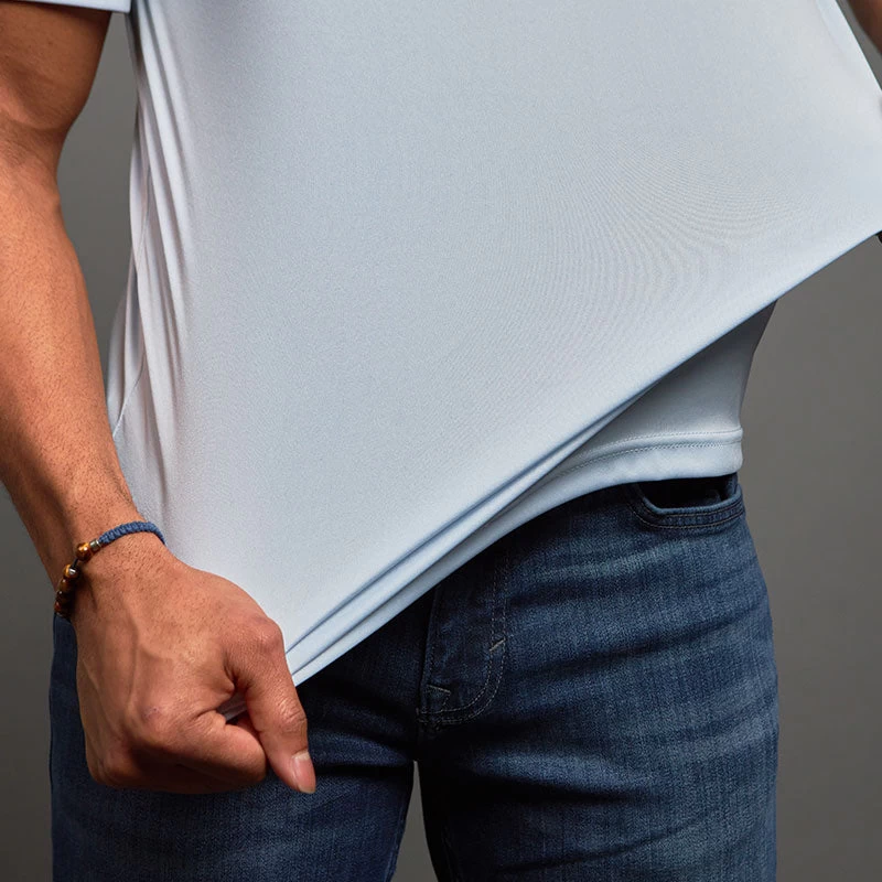 The versatile Semi-Spread Collar Polo. Woven for comfort and designed for style. This shirt pairs a formal semi spread dress collar with an extra comfortable, 4-way stretch, short-sleeved polo. The semi-spread collar has all the benefits of our ever popular English spread collar with a streamlined size and built to accommodate a larger tie knot
