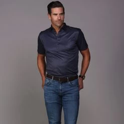 The versatile Semi-Spread Collar Polo. Woven for comfort and designed for style. This shirt pairs a formal semi spread dress collar with an extra comfortable, 4-way stretch, short-sleeved polo. The semi-spread collar has all the benefits of our ever popular English spread collar with a streamlined size and built to accommodate a larger tie knot