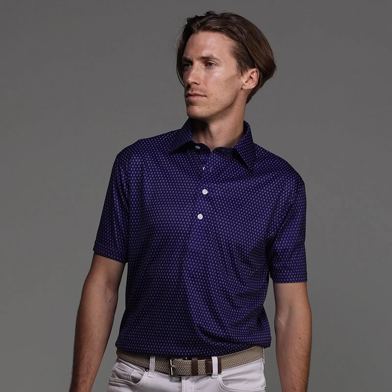 The versatile Semi-Spread Collar Polo. Woven for comfort and designed for style. This shirt pairs a formal semi spread dress collar with an extra comfortable, 4-way stretch, short-sleeved polo. The semi-spread collar has all the benefits of our ever popular English spread collar with a streamlined size and built to accommodate a larger tie knot