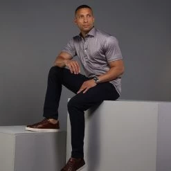 The versatile Semi-Spread Collar Polo. Woven for comfort and designed for style. This shirt pairs a formal semi spread dress collar with an extra comfortable, 4-way stretch, short-sleeved polo. The semi-spread collar has all the benefits of our ever popular English spread collar with a streamlined size and built to accommodate a larger tie knot