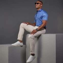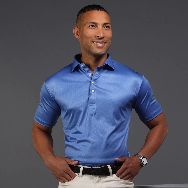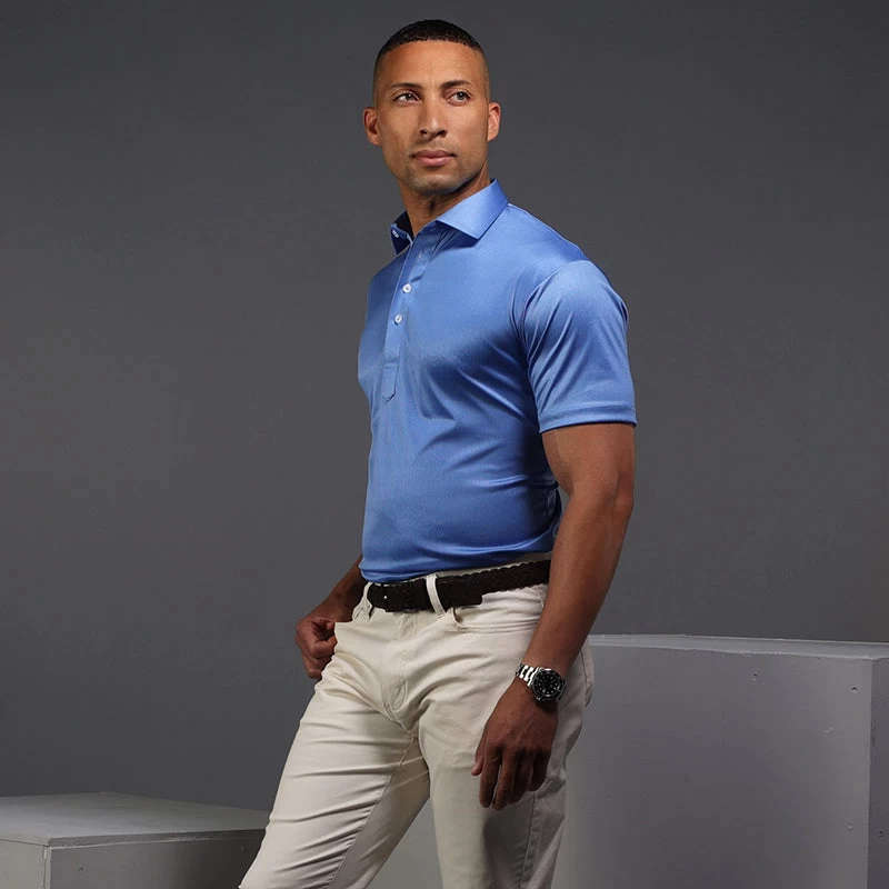 The versatile Semi-Spread Collar Polo. Woven for comfort and designed for style. This shirt pairs a formal semi spread dress collar with an extra comfortable, 4-way stretch, short-sleeved polo. The semi-spread collar has all the benefits of our ever popular English spread collar with a streamlined size and built to accommodate a larger tie knot