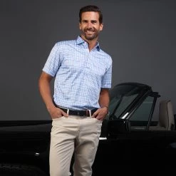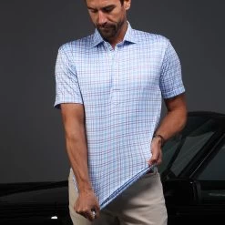 The versatile Semi-Spread Collar Polo. Woven for comfort and designed for style. This shirt pairs a formal semi spread dress collar with an extra comfortable, 4-way stretch, short-sleeved polo. The semi-spread collar has all the benefits of our ever popular English spread collar with a streamlined size and built to accommodate a larger tie knot