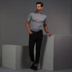 The versatile Semi-Spread Collar Polo – Slim Fit. Woven for comfort and designed for style. This shirt pairs a formal semi spread dress collar with an extra comfortable, 4-way stretch, short-sleeved polo. The semi-spread collar has all the benefits of our ever popular English spread collar with a streamlined size and built to accommodate a larger tie knot