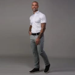 The versatile Semi-Spread Collar Polo. Woven for comfort and designed for style. This shirt pairs a formal semi spread dress collar with an extra comfortable, 4-way stretch, short-sleeved polo. The semi-spread collar has all the benefits of our ever popular English spread collar with a streamlined size and built to accommodate a larger tie knot