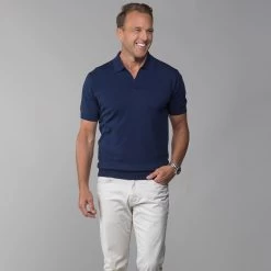 The Maranello Cotton & Silk Buttonless Polo Navy – Tailored Fit
