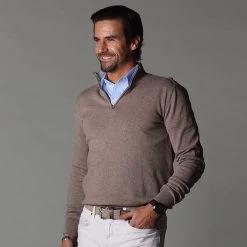 Light Grey Melange Cashmere Touch Australian Merino Quarter Zip Sweater